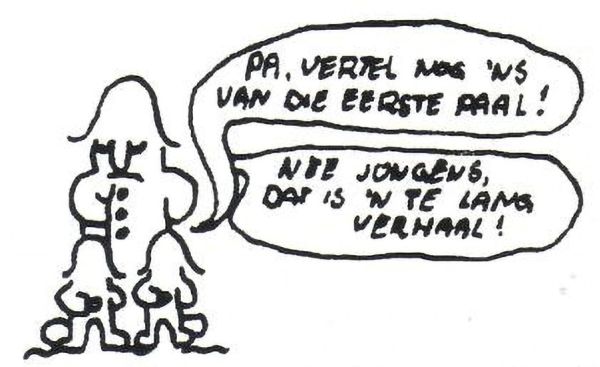Napoleonnetje uit nieuwsbrief 24. Deze tekeningetjes van Huub Philippens verschenen van 1980 t/m 1985 in de nieuwsbrieven.
