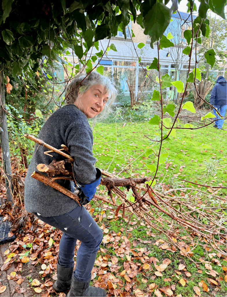 – opkomende bomen mn. Lindes, Platanen en Spaanse Aken verwijderen (er staan nog een paar kleintjes die we volgende onderhoudsdag gaan aanpakken).